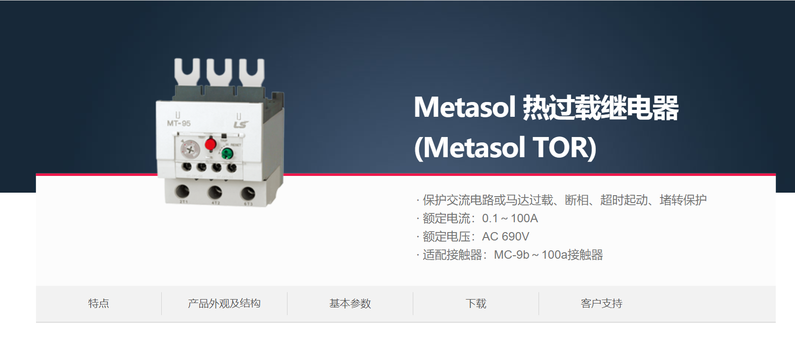 當(dāng)前位置網(wǎng)站首頁 > 產(chǎn)品展示 > LS產(chǎn)電電氣元器件 > 接觸器(MC)&熱過載繼電器(MS) > Metasol 熱過載繼電器 >